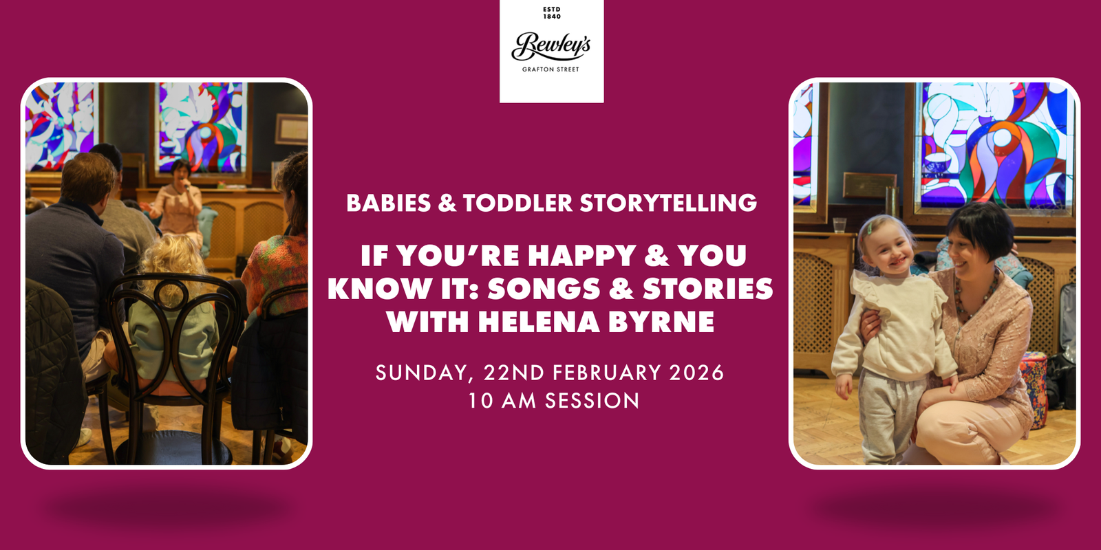 ![]() If You’re Happy and You Know It! Join us at Bewley’s for a joyful storytelling and singing session designed especially for babies & toddlersLed by storyteller and singer Helena Byrne, […]