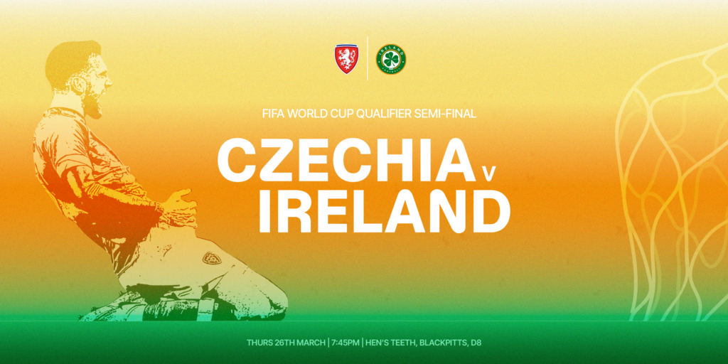 Join us for Ireland’s WC semi final qualifier on Thursday 26th March. It’s a biggie…